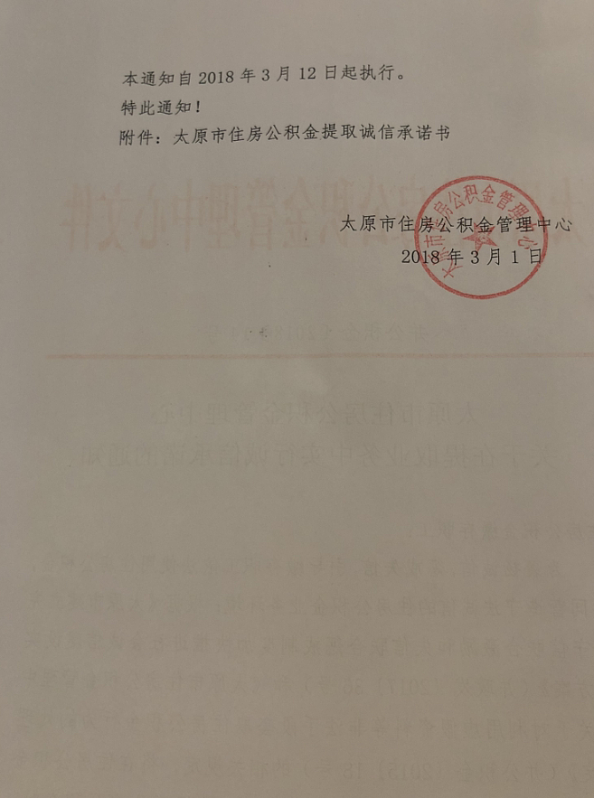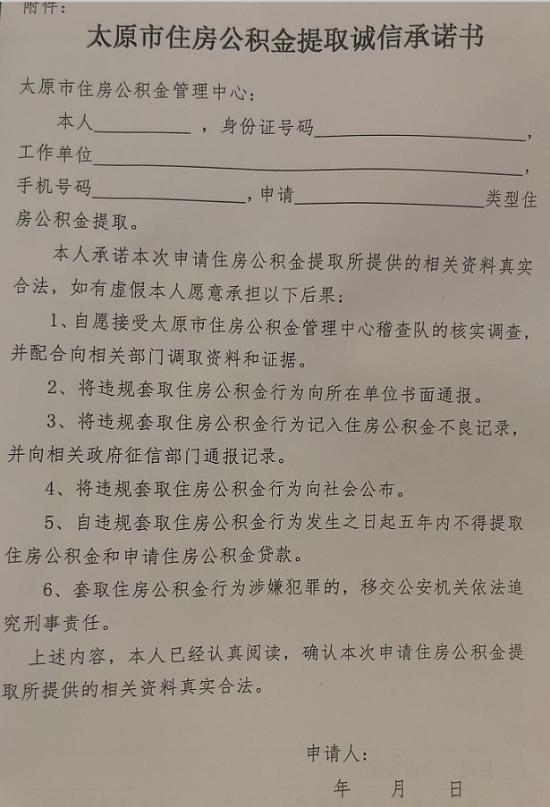 太原公积金新增诚信承诺书签署,具体情况见下方文件原文:
